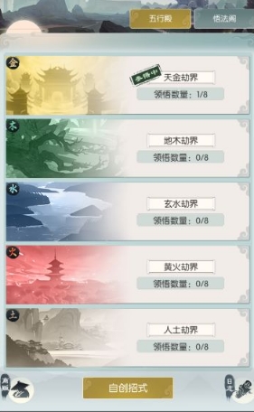 完成图谱参悟后,即可开始自创。核心要求有两个:其一,需拥有一项已修炼至十级的基础招式作为蓝本;其二,至少已参悟一个五行图谱。