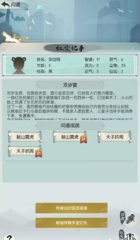 例如在“三皇子”的故事线中,玩家会经历抓周、宫廷宴会等一系列事件。