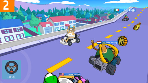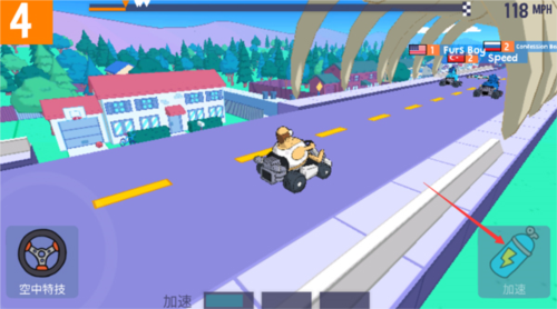 2、比赛过程中,点击相应按钮可让卡丁车变道并施展空中特技动作。