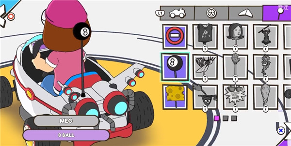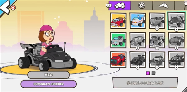 2、选定角色后,在已解锁的卡丁车库里,选择一辆你中意的车型。
