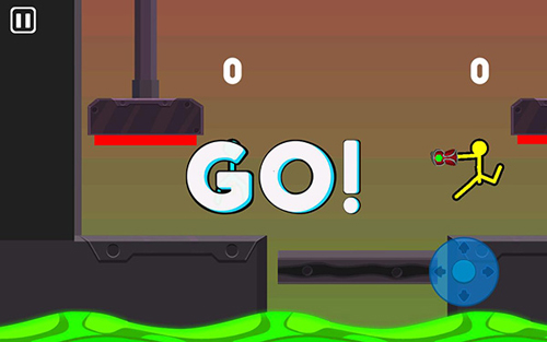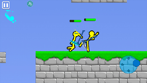 4、通过滑动屏幕上的摇杆来控制火柴人移动与攻击,先将对手击落的一方即可获胜。