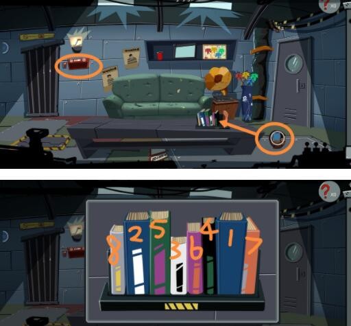 将【书】放入桌上书架,按照书皮至书脊的颜色首尾相连的顺序点击每一本书,底部暗格打开后取得【电池】。