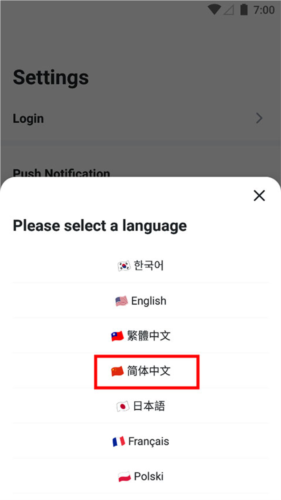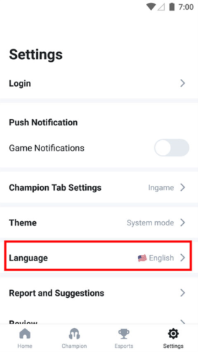 1、打开opgg手机客户端,进入设置页面,选择“language”选项。
