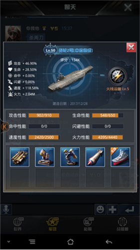 穿刺、防护、命中、攻击是航母装备评分最高的四项属性。