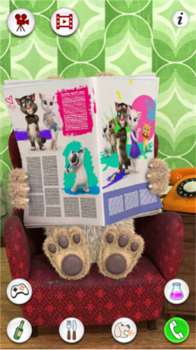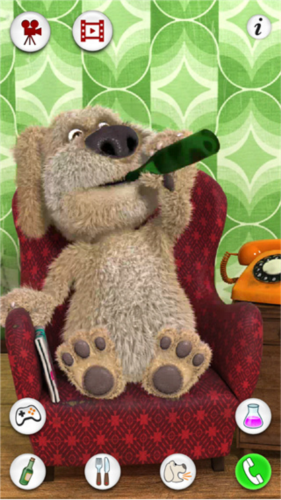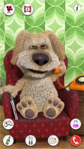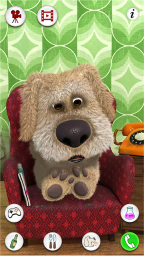 2、进入主界面,用手指轻点小狗手中的报纸,它会合上报纸并开始注意你;此时你可以对它说话,它会模仿你说话的语调重复内容;