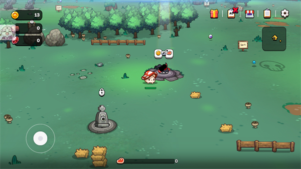 1、启动游戏后跟随指引向前探索,控制蘑菇角色移动;