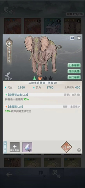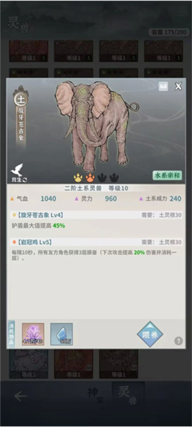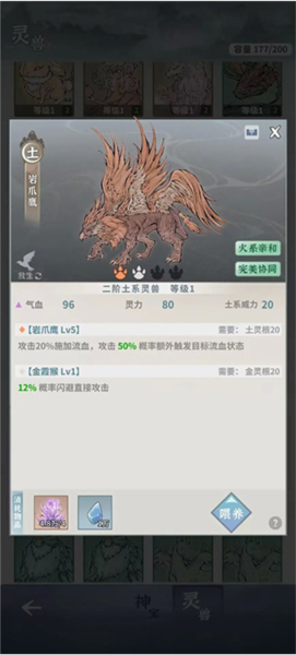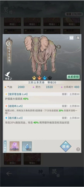 灵兽需升级后才能合成,每提升十级可合成一次;