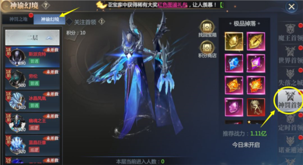 1、入口:主界面右上角【首领】→右侧栏【神罚首领】→左上角【神谕幻境】