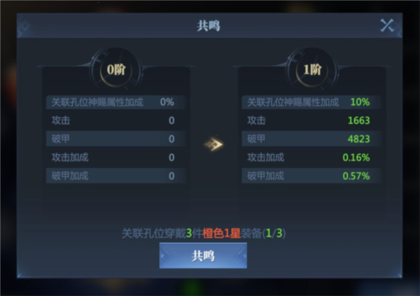 若已激活共鸣的孔位上的装备被卸下或不再满足条件,共鸣等级将自动下降。