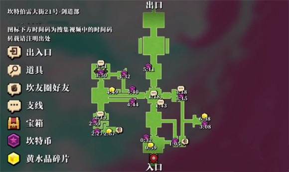 剑道部地图共有4个黄碎片与25个紫币,具体位置已在下图标明。
