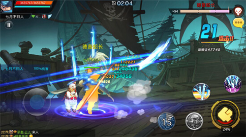 最终BOSS德普船长拥有四个技能:近身挥砍、火枪射击、召唤骷髅和召唤地雷。火枪射击前地面显示直线范围,召唤技能前显示落点位置。熟悉技能模式后,躲避攻击并反击即可取胜。