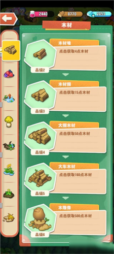2、木材同样存在储存上限,取决于木材厂等级;建议玩家多囤积木材,后期许多物品需要大量木材兑换。