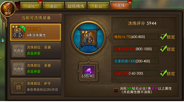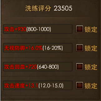 洗练新属性槽时,可锁定其他已满意的属性槽;这样在后续洗练过程中,已锁定的属性将不会受到影响。