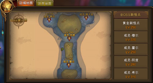 进入副本后,打开地图能查看BOSS分布位置;玩家可根据自身实力选择合适目标进行挑战。
