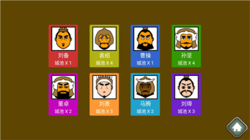 2、从多位主公中选定角色,每位主公初始拥有不同城池;