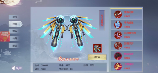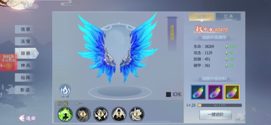 翅膀支持幻化功能,改变外观的同时继续提升属性;提高幻化等级可按百分比增强生命值。
