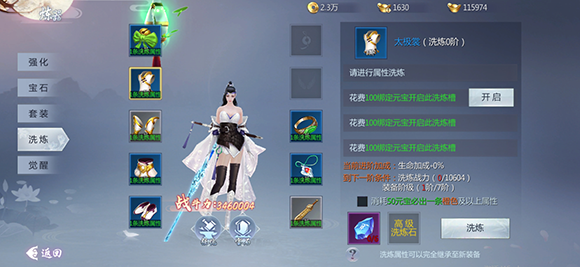 5、当洗炼属性数值与装备阶级达到要求时,可手动提升洗炼阶级以获得总属性加成,提升后加成永久生效。