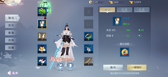 1、玩家达到六十级开启强化功能,消耗铜钱可强化装备并获得固定属性提升。