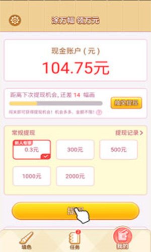 1、在点点涂色中点击我的页面,选择想要提现的金额;