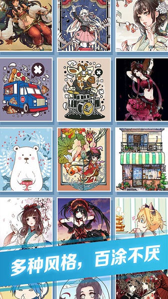 4、绘画素材精美且风格多样,让玩家沉浸于色彩艺术世界,将压力转化为完成作品的成就感,帮助缓解日常疲劳;
