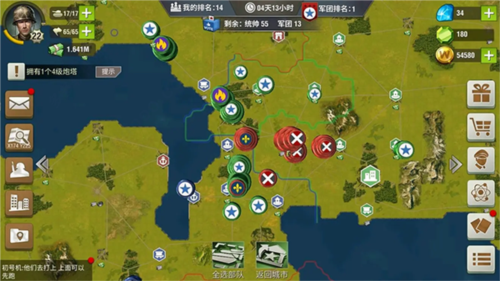 3、需掌握兵种克制关系,了解四级防御塔射程,将叛军重坦引出其射程范围,再集中主力消灭其一千五百辆坦克;随后需用战斗机引开敌方飞机。注意避免全军压上导致重大损失。进攻鹰城前,需在其附近占据一座十五级城市作为前沿基地,否则难以攻破核心并会承受严重伤亡。