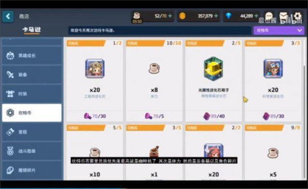 坎特币商店中,兑换优先级最高的是咖啡机,其次是体力,然后是装备箱与角色碎片;收集全部普通与噩梦关卡的坎特币,足以搬空该商店;集齐五台咖啡机后,体力栏旁会出现咖啡豆图标,点击可回满体力并提升上限;注意避免在体力已满时使用,以免造成浪费。