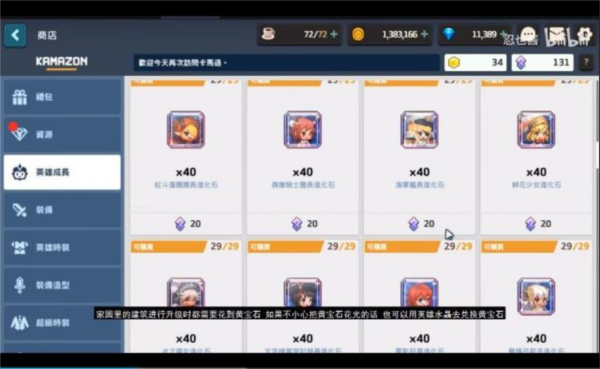 若黄宝石不足,也可用英雄水晶兑换,但此举并不推荐;英雄水晶主要应用于英雄突破,将角色升至满级所需数量庞大,国服建议优先用于土花、船长等关键角色。