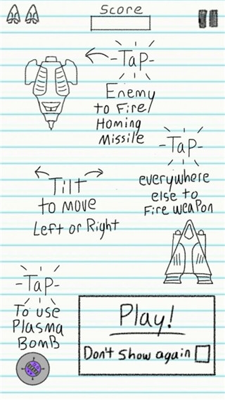 游戏内含大量手绘图案,如宇宙飞船、外星人、陨石与星球等,在纸面上为你高度还原一个宇宙世界,让你参与充满趣味的冒险;游戏中不仅有欢乐的进程,还有诙谐幽默的背景音乐陪伴,玩法操作非常新颖;玩家可以随意在游戏中添加喜欢的道具,绘制图案,只需不断移动手机就能控制飞行器攻击敌人。