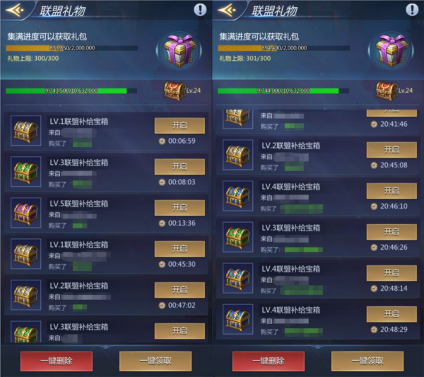 加入联盟后每日可领取盟友发放的礼物,记得及时收取;已购买的周卡、月卡等需上线手动领取奖励。