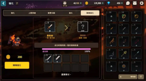 将不需要的一星及二星装备随机进化为三星。