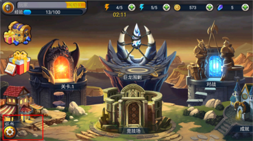 1、启动游戏后,在主界面找到并点击右下角的齿轮形状设置按钮。