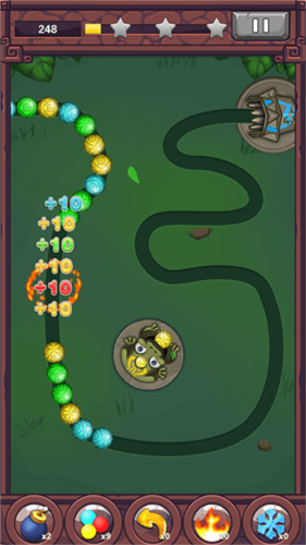 游戏过程中,待发射球的运动轨迹会以颜色线条清晰显示。按住彩珠准备发射时,可专注观察此轨迹线,操作更为顺手。关卡中随机解锁的特殊彩珠作用显著,击中它们可能引发大范围消除,获得更高分数。例如“火球”彩珠,被激活后下一发将变为火球,可造成大面积消除效果。