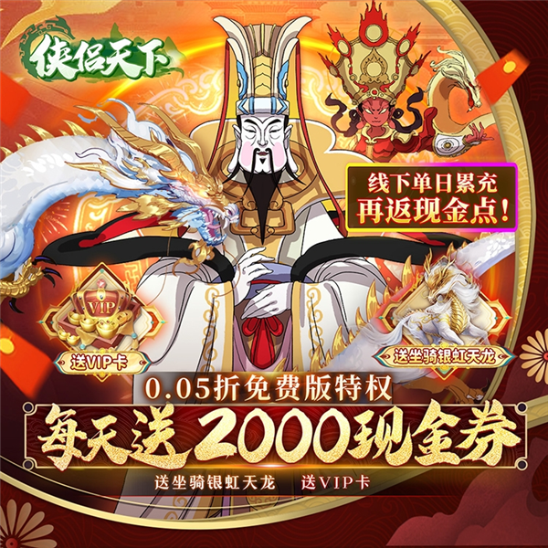 后缀说明:首充续充直购特权统统0.05折,每天上线即领2000现金券,福利升级线下每日累充再返现金券;