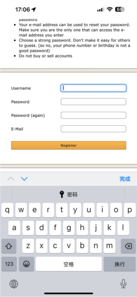 4、随后进入注册页面,有条件的用户可以翻译该网页。