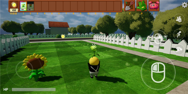 5、通过屏幕左侧的移动轮盘来调整视角,并选择合适的位置种植植物。