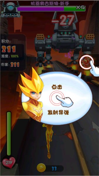 9、抵达关卡末尾时,将遭遇守关首领,点击首领即可控制角色发射炮弹进行攻击;