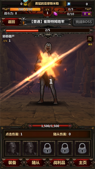 5、遭遇强大头目前可返回主页,为角色升级装备。