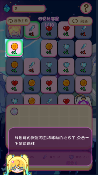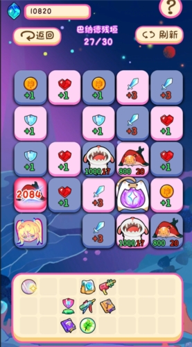 每个方格可能包含不同资源,例如金币或攻击力加成。
