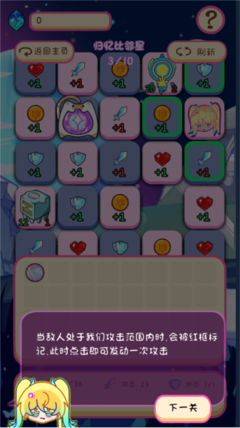 遇到敌人时,格子框体显示为红色,点击即可发动攻击。