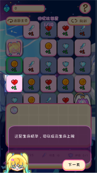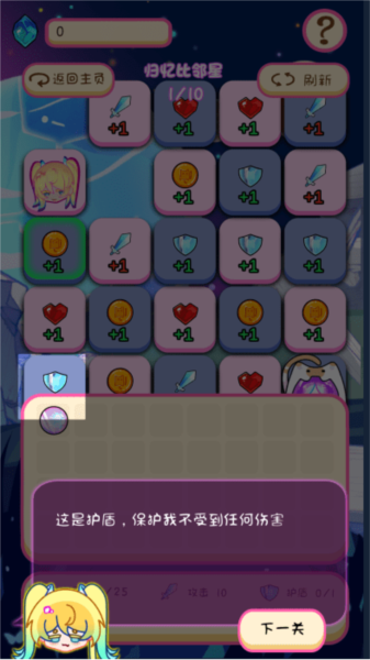 也有提供生命值恢复或护盾增益的格子。