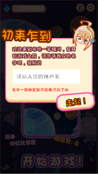 首先输入角色名称,即可开始游戏。