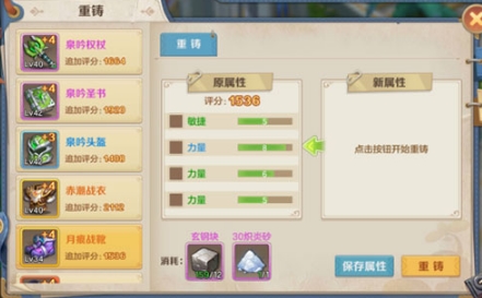 重铸功能仅针对红装与橙装,使用特定材料可重置装备属性,洗炼出适合自身职业的词条。