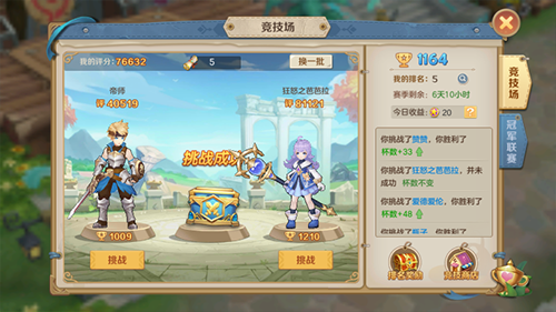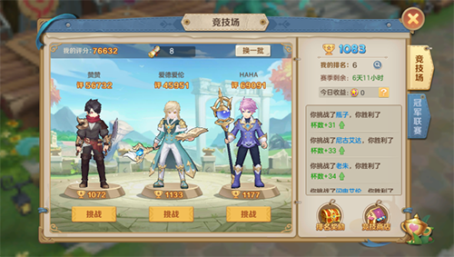 6、挑战胜利可获得奖励并刷新对手,胜利增加杯数,失败则杯数不变。