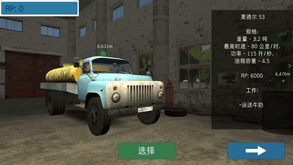 5、从车库中挑选一辆卡车用于运输;