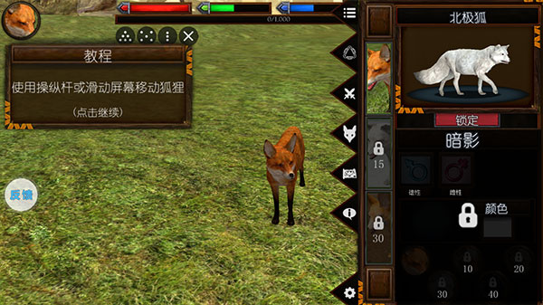 8、提供三种狐狸初始选择,核心目标是在自然环境中存活。