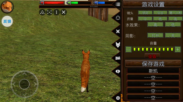 3、菜单内可查看地图与狐狸各项属性;设置选项中能调整游戏视角。