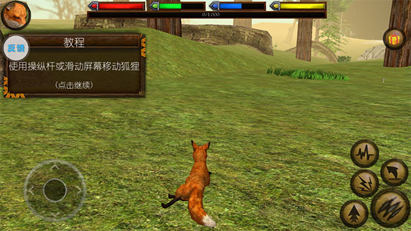 1、进入终极狐狸模拟器游戏后,使用左下角按钮控制狐狸移动。