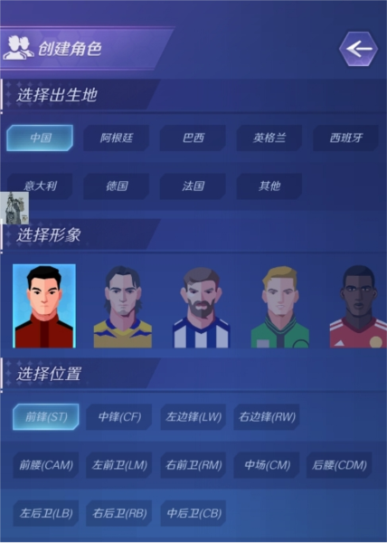 2. 首先创建专属球员角色,自定义出生地、外观、场上位置及昵称,完成后点击开启巨星之路按钮;