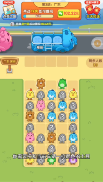 设定胜利条件:所有小土豆上车后视为胜利,可触发红包奖励;