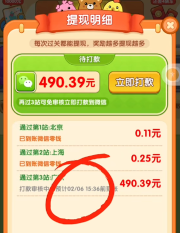 3、通过指定关卡后可申请提现。